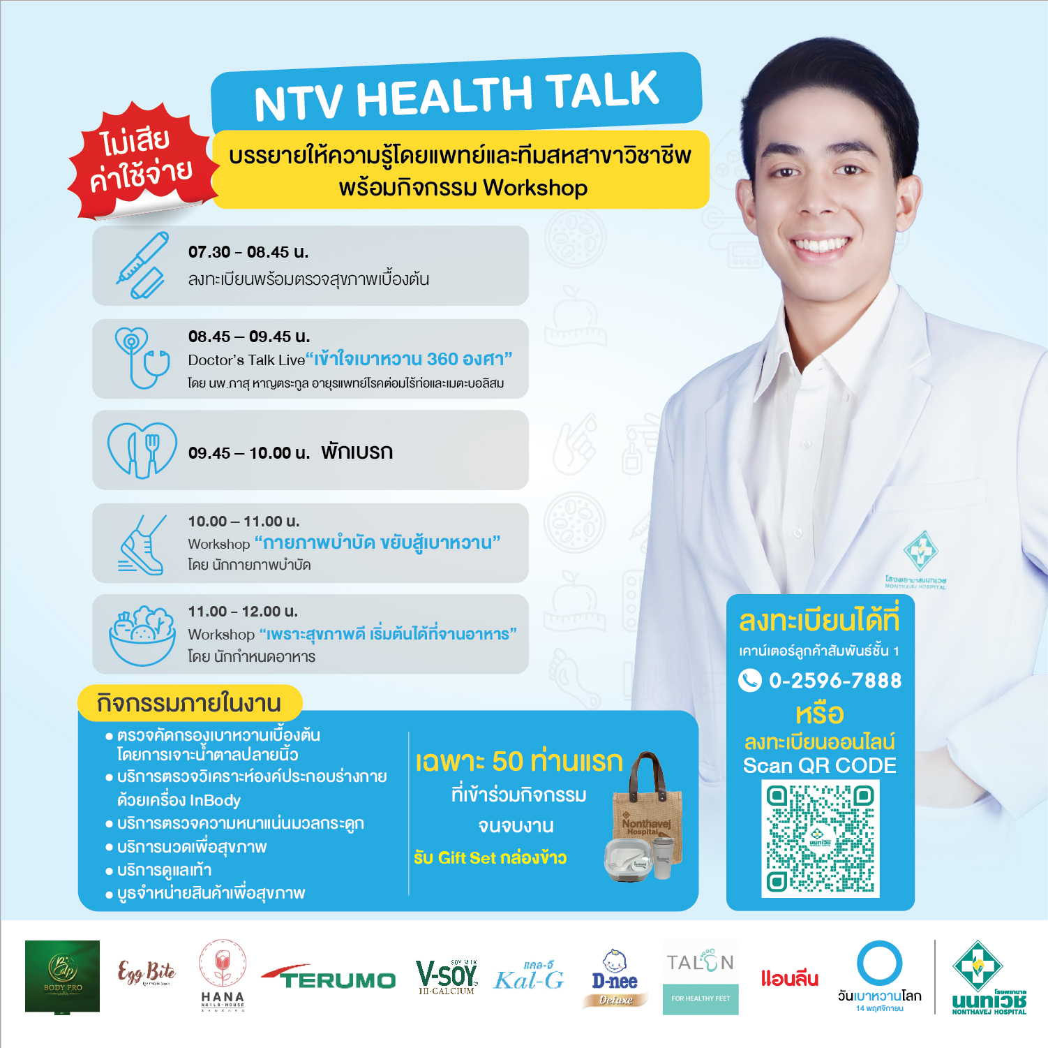 • หัวข้อ “เข้าใจเบาหวาน 360 องศา” โดย นพ.ภาสุ หาญตระกูล อายุรแพทย์โรคต่อมไร้ท่อและเมตะบอลิสม