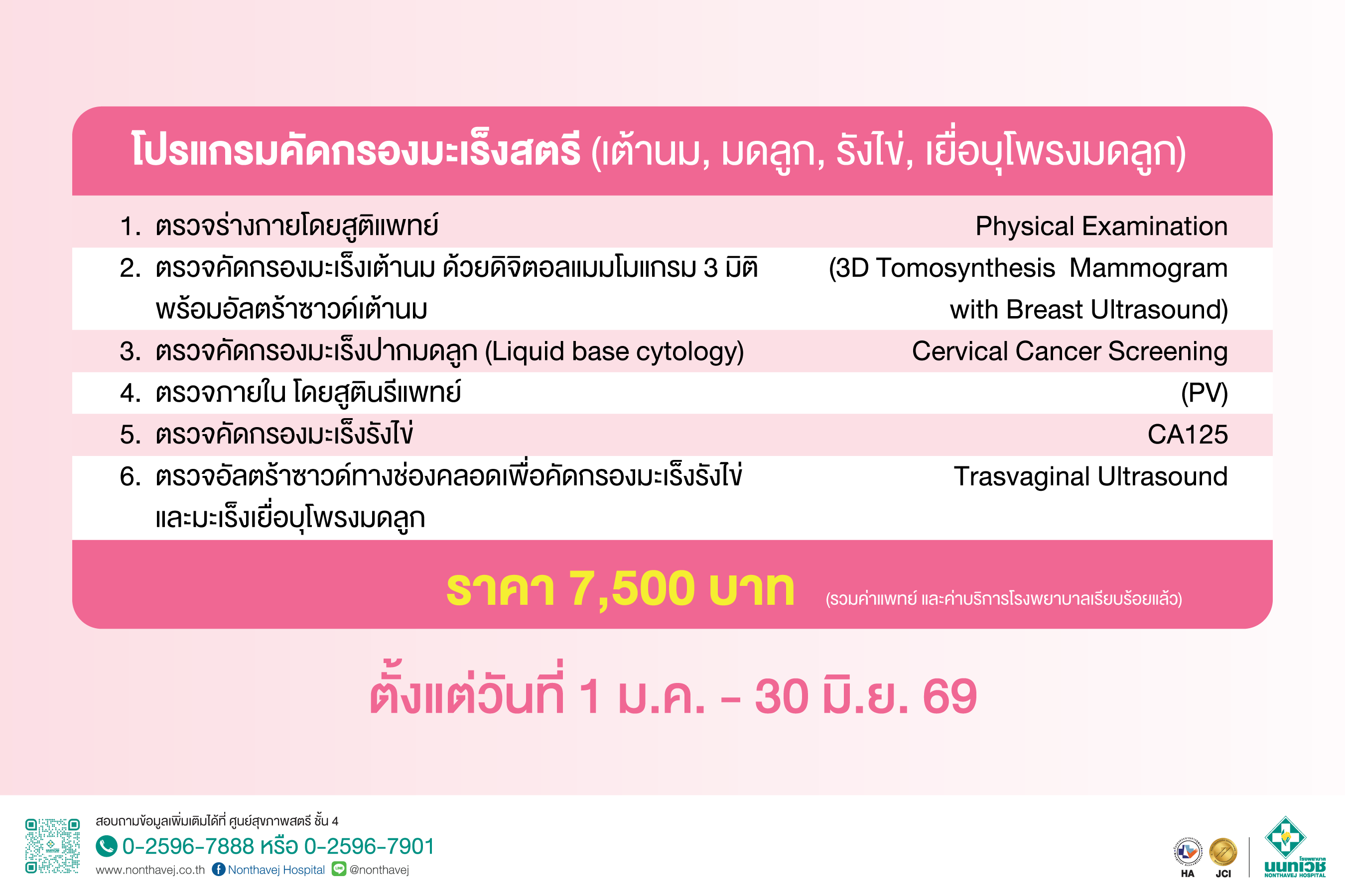 โปรแกรมตรวจคัดกรองมะเร็งสตรี (เต้านม มดลูก รังไข่ และเยื่อบุโพรงมดลูก)