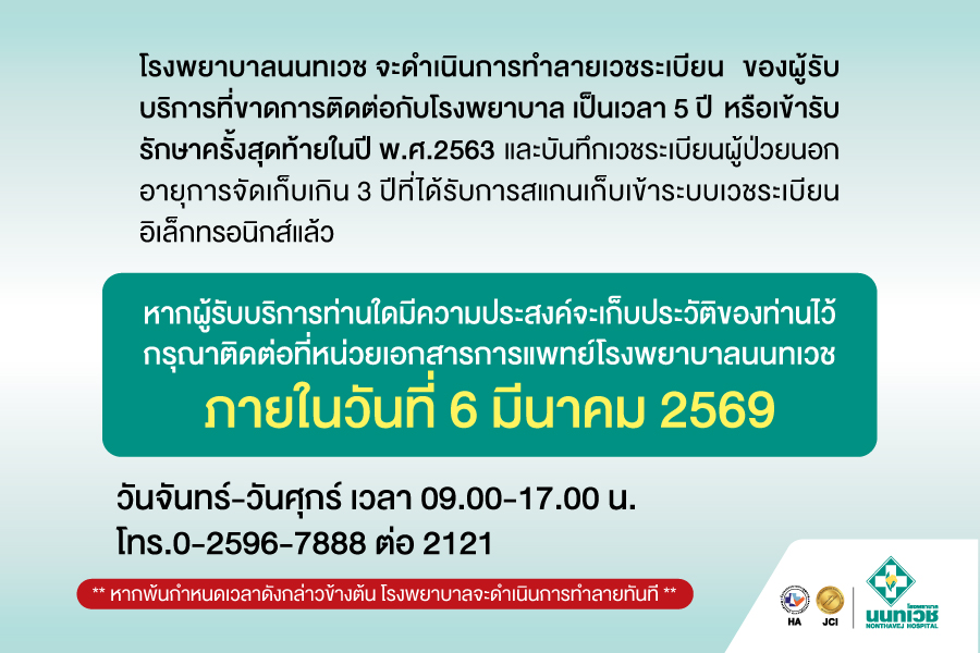 ประกาศโรงพยาบาลนนทเวช เรื่อง การทำลายเวชระเบียน