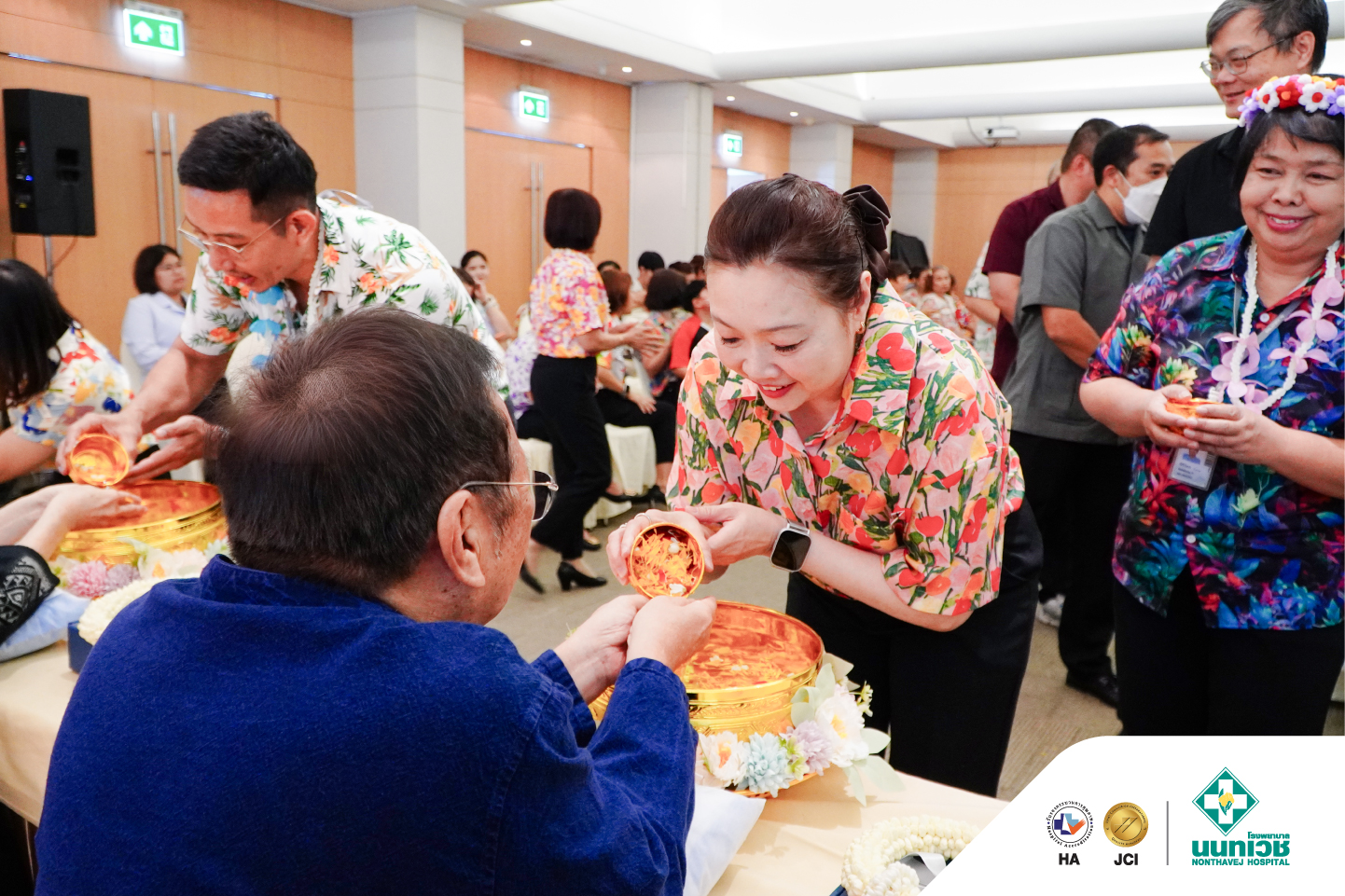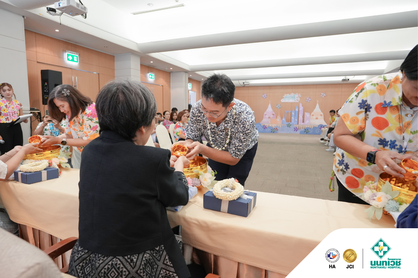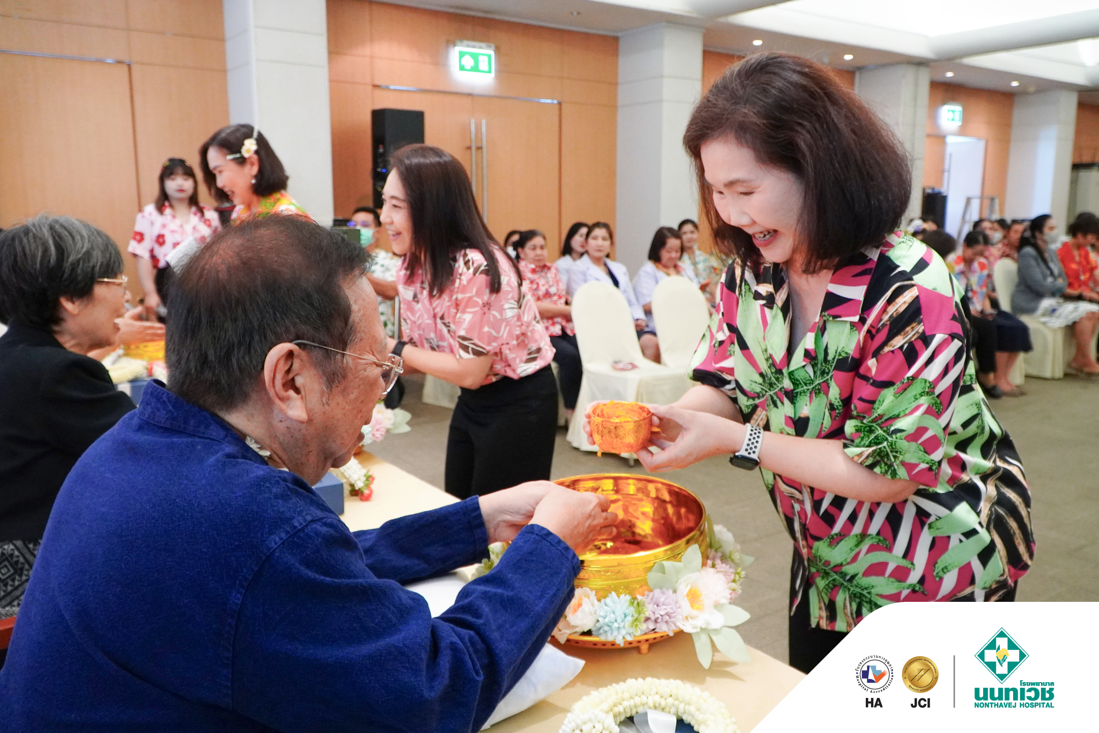 ภายในงานมีพิธีสรงน้ำพระเพื่อความเป็นสิริมงคล พร้อมทั้งรดน้ำขอพรจาก รศ.ดร.กมเลศน์ สันติเวชชกุล ประธานเจ้าหน้าที่บริหาร และคณะผู้บริหารโรงพยาบาลนนทเวช โดยมีแพทย์ พยาบาล และบุคลากรเข้าร่วมอย่างพร้อมเพรียง บรรยากาศเป็นไปอย่างอบอุ่น เต็มไปด้วยรอยยิ้ม สะท้อนถึงความผูกพันในองค์กรและเสน่ห์ของวัฒนธรรมไทย