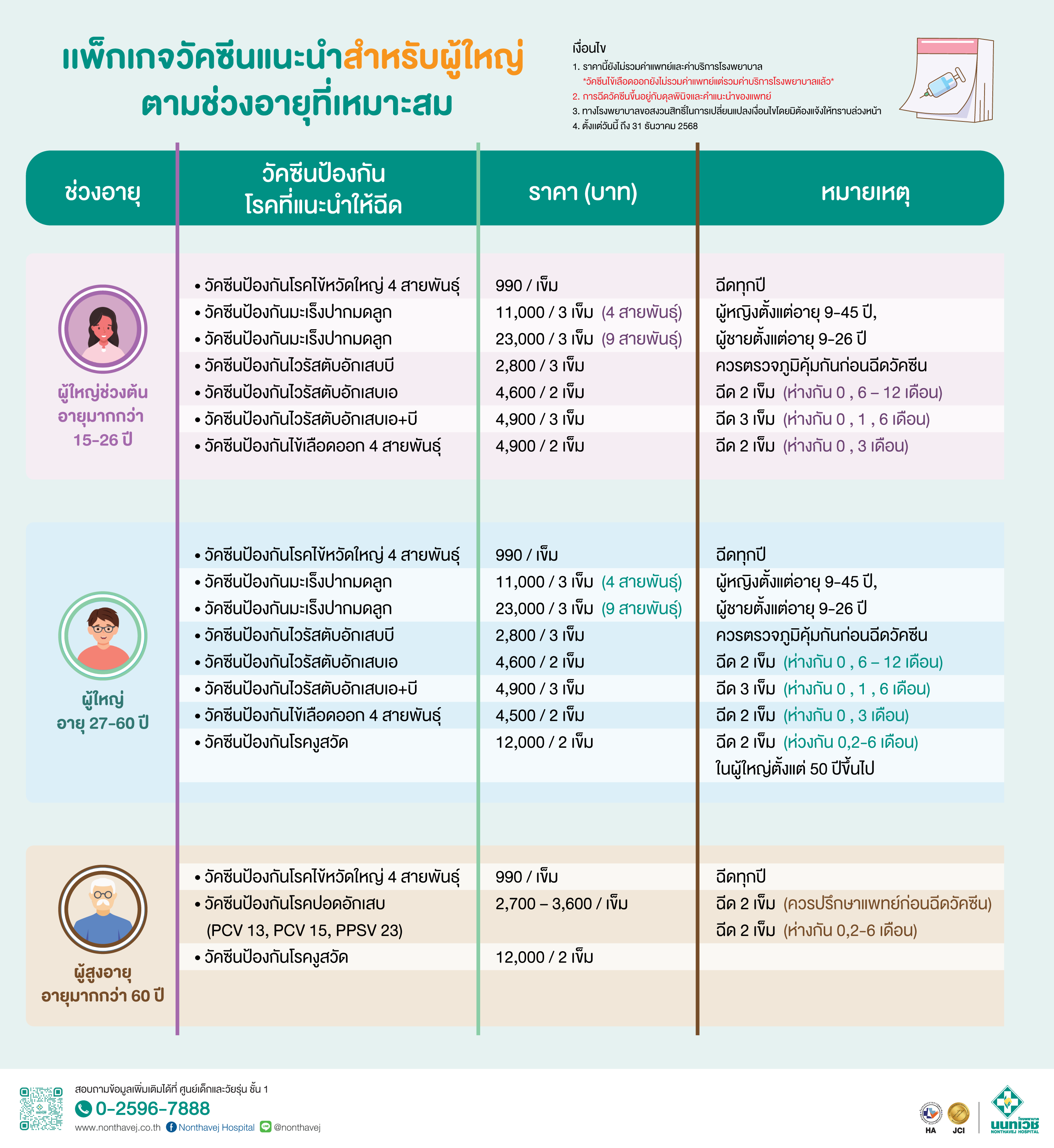 แพ็กเกจวัคซีน สำหรับเด็กและผู้ใหญ่