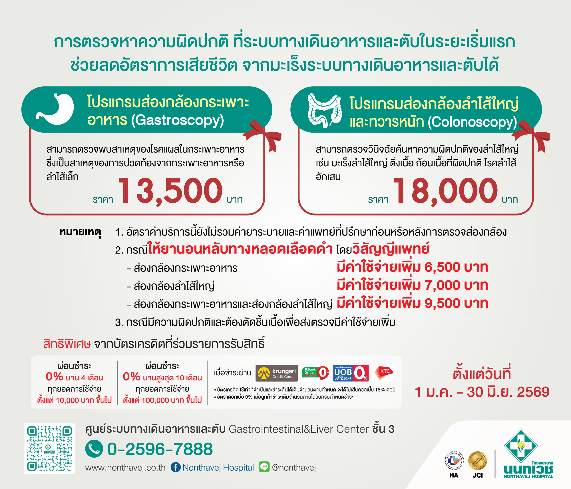โปรแกรมส่องกล้องกระเพาะอาหารและลำไส้ใหญ่ ตรวจคัดกรองโรคระบบทางเดินอาหารและตับ