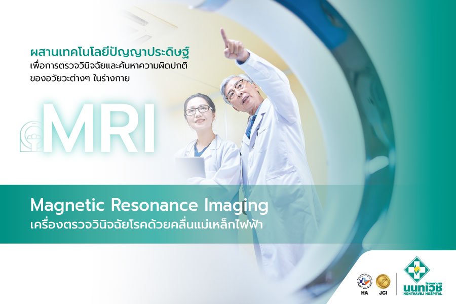- Magnetic Resonance Imaging : MRI เทคโนโลยีเพื่อการตรวจวินิจฉัยและค้นหาความผิดปกติของอวัยวะต่างๆ ในร่างกายตั้งแต่ระยะแรกเริ่ม เพื่อการรักษาได้อย่างทันท่วงที