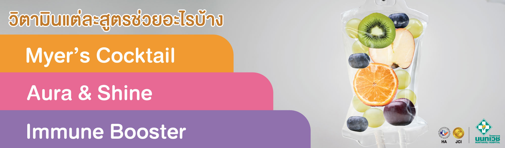 ศูนย์สร้างเสริมสุขภาพ โรงพยาบาลนนทเวช พร้อมให้บริการ วิตามินทุกสูตรผสมวิตามินโดยทีมเภสัชกร ได้แก่