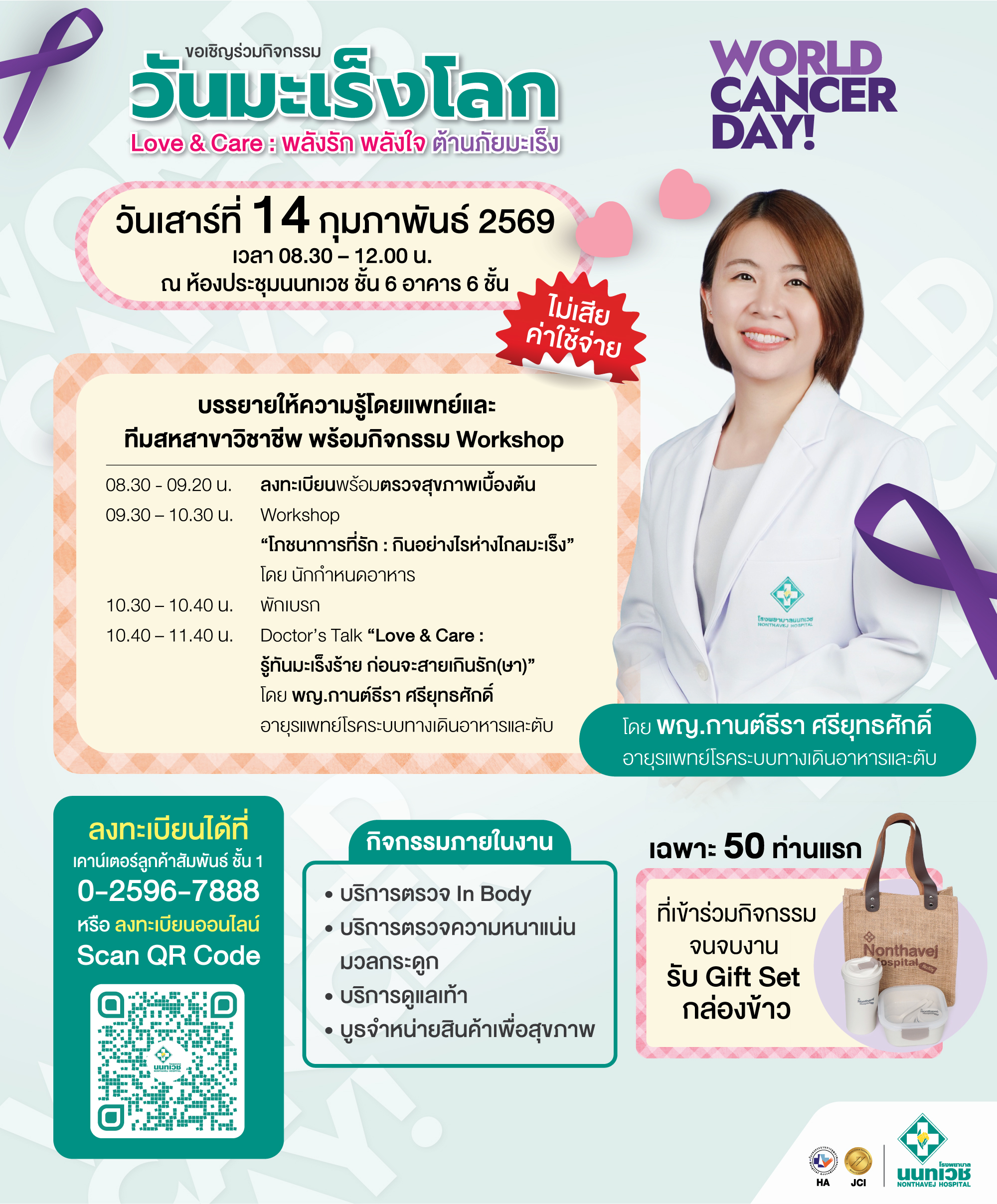 โรงพยาบาลนนทเวช ร่วมรณรงค์วันมะเร็งโลก 2569 กับกิจกรรม “Love & Care”
