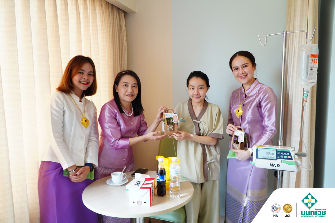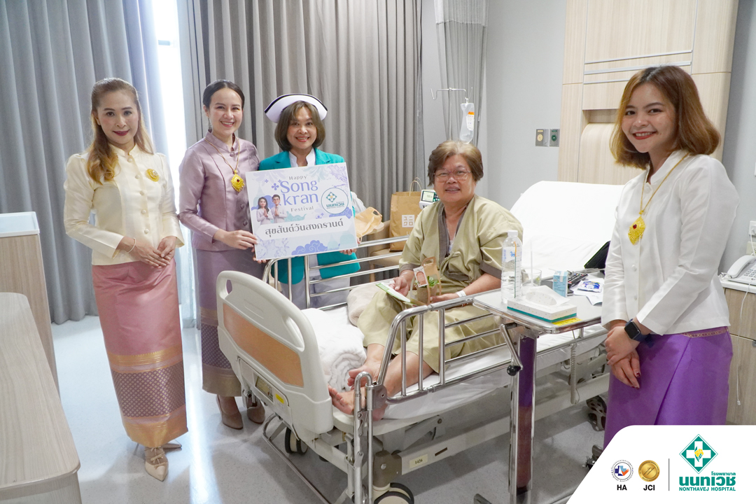 เนื่องในเทศกาลสงกรานต์ 2569 โรงพยาบาลนนทเวช นำโดยคุณกิ่งกมล วงศ์ฟัก รักษาการผู้จัดการฝ่ายพัฒนาธุรกิจและการตลาด ร่วมมอบต้นไม้มงคลแก่ผู้เข้ารับบริการในโรงพยาบาล และผู้ที่เข้ารับการรักษาภายในหอพักผู้ป่วย เพื่อเป็นการแสดงความห่วงใย และความปรารถนาดี พร้อมทั้งส่งต่อความหมายดีๆ ของต้นไม้มงคลที่ช่วยเสริมสร้างสิริมงคล และความเจริญรุ่งเรือง